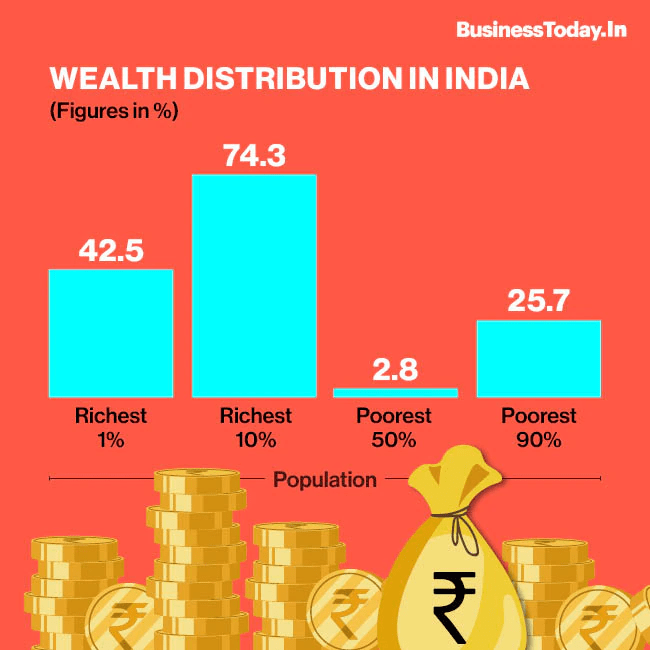 ସ୍ୱାଧୀନତା ସମୟରେ ଦେଶର ୧% ଧନୀ ଲୋକଙ୍କ ପାଖରେ ମୋଟ ୨୦% ସମ୍ପତ୍ତି ରହିଥିବାବେଳେ ତାହା ଧିରେ ଧିରେ ବୃଦ୍ଧି ପାଇଁ ଆଜି ଏକ ବିପଜ୍ଜନକ ସ୍ତରରେ ପହଂଚିଛି