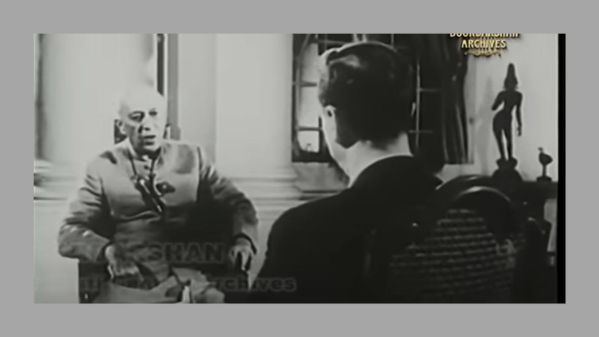 ସାକ୍ଷାତକାର ଆରମ୍ଭ କରିବା ପୂର୍ବରୁ ଜବାହାରଲାଲ ନେହରୁଙ୍କର ସରକାରୀ ବାସଗୃହ ସାମନାରେ ଠିଆ ହୋଇ ସାମ୍ବାଦିକ କହୁଥିଲେ-
