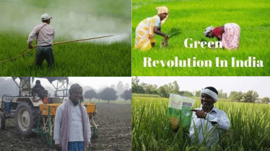 ୧୯୫୩ବେଳକୁ Nation Extension Service (NES) ଦେଶ ସାରା କାର୍ଯ୍ୟକାରୀ ହେଲା । ଗ୍ରାମ ସେବକ ଏବଂ କୃଷି ସମ୍ପ୍ରସାରଣ ଅଧିକାରୀ ପ୍ରତ୍ୟକ ବ୍ଲକରେ ନିଯୁକ୍ତି ହେଲେ । ସେମାନେ ଗାଁମାନଙ୍କୁ ଯାଇ ସାର, ଔଷଧ, ନୂଆ ବିହନର ଚମକôାରିତା ବୁଝାଇଲେ । ରାଜ୍ୟ କୃଷି ଅଧିକାରୀମାନେ ମଧ୍ୟ ଏହି କାର୍ଯ୍ୟକ୍ରମରେ ସାମିଲ ହେଲେ । ଚାଷୀ ପାଖରେ ନୂଆ ଚାଷ ପ୍ରଣାଳୀ, କୃଷି କ୍ଷେତ୍ରରେ ବୈଷୟିକ ଜ୍ଞାନ କୌଶଳପାଇଁ ଏହା ପ୍ରଥମ ପଦକ୍ଷେପ । ପ୍ରଥମ ପଞ୍ଚବାର୍ଷିକ ଯୋଜନାରେ ଦେଶସାରା ଜଳସେଚନର ବ୍ୟାପକ ବ୍ୟବସ୍ଥାପାଇଁ ସରକାର କାମ ଆରମ୍ଭ କଲେ । ଧାନବାଦର ସିନ୍ଦ୍ରିରେ ସରକାରଙ୍କ ଦ୍ୱାରା ସାର କାରଖାନା ସ୍ଥାପନ ହୁଏ । କାରଖାନାରୁ ୧୯୫୧କୁ ଆମୋନିୟମ ସଲଫେଟ ଏବଂ ୧୯୫୯କୁ ୟୁରିଆ ପ୍ରସ୍ତୁତ ହୁଏ । ବର୍ତ୍ତମାନ ଆମେରିକା ଆଉ ଲୁଚାଛପାରେ ରାସାୟନିକ କୃଷି ପ୍ରବର୍ତ୍ତନ କରିବା ନାହିଁ । ଭାରତ ସରକାର ଆମେରିକା ପ୍ରସ୍ତାବରେ ପୁରାପୁରି ରାଜି ହୋଇଗଲେ । ଏଣିକି ଆମେରିକା ପ୍ରସ୍ତାବ ରଖୁଥିବ ଭାରତ କାର୍ଯ୍ୟକାରି କରିବ ।